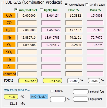 Si la temperatura del flue-gas desciende a 15ºC, habrá condensación del vapor de agua (al ser ésta temperatura inferior a la de rocío del vapor de agua, 49.61ºC)