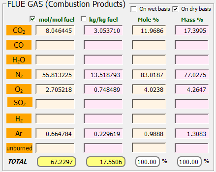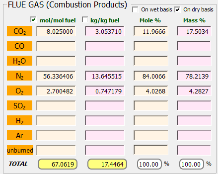 Idealmente, desea proporcionar la cantidad justa de aire para quemar completamente todo el combustible, es decir la cantidad estequiométrica. Pero esto resulta difícil de lograr por una serie de razones, que incluyen una mezcla inadecuada de aire y combustible, rendimiento del quemador, condiciones ambientales y operativas fluctuantes, y desgaste del quemador. Para garantizar que el combustible se queme completamente, se proporciona una cierta cantidad de exceso de aire (un 22% de exceso ente caso). Para asegurarse de que no se utiliza más exceso de aire del necesario, se suele medir el exceso de oxígeno en los gases de combustión. Para garantizar que se minimice la cantidad de inquemados, hidrógeno o monóxido de carbono, en los gases de combustión, se miden los combustibles con un analizador de Orsat.