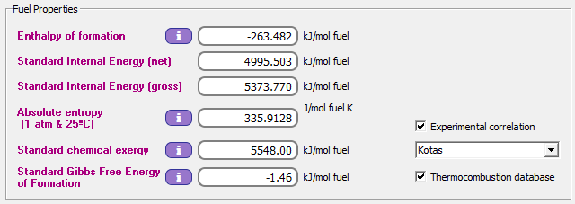 Entalpía de formación del combustible a 25ºC y 1 atm