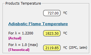 Temperatura adiabática de la llama en ºC