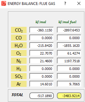 Calor liberado en kJ/mol combustible, sabiendo que los gases de escape salen a 727ºC