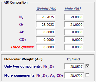 Composición del aire seco (con Ar y CO2):