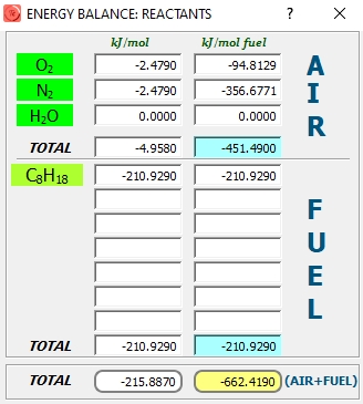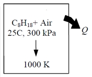 Una mezcla de octano (0.1 kg) y aire (4.6 kg) contenidos en un depósito cerrado se queman a volumen constante. La mezcla se encuentra a 25ºC y 300 kPa. La temperatura alcanzada por los productos de combustión es de 727ºC. Obtener:
