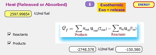 El cambio de entalpía, ∆U para una reacción química viene dado por la diferencia entre la energía interna de los productos y la de los reactivos.