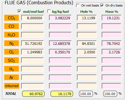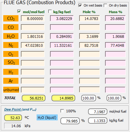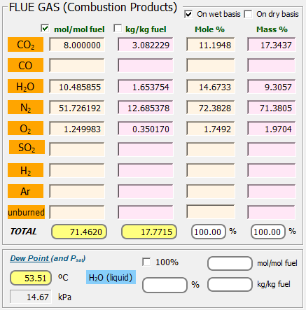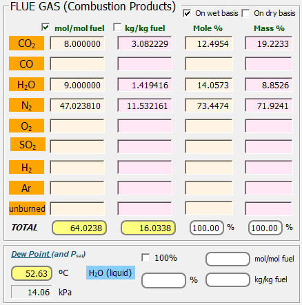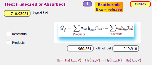 THERMOCombustion suministra los poderes caloríficos superior e inferior a presión constante, LHV y HHV: