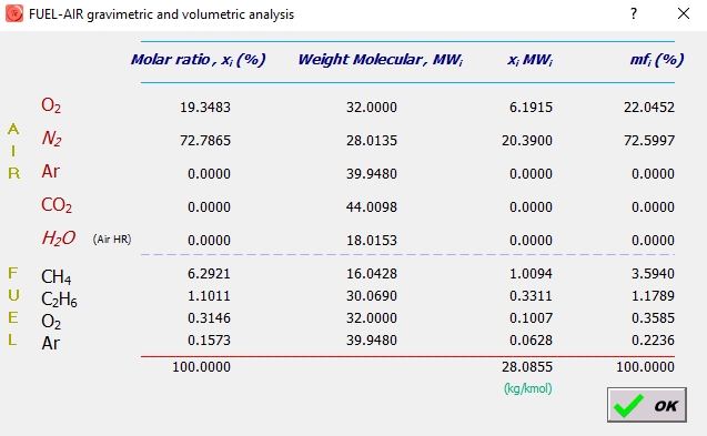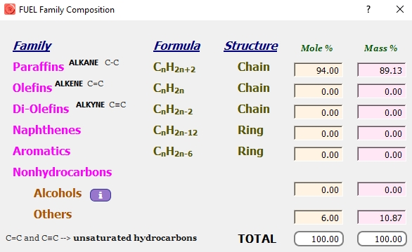 Introducimos la mezcla de gases que componen el gas natural: