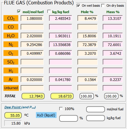 Composición de los productos de combustión en base húmeda: