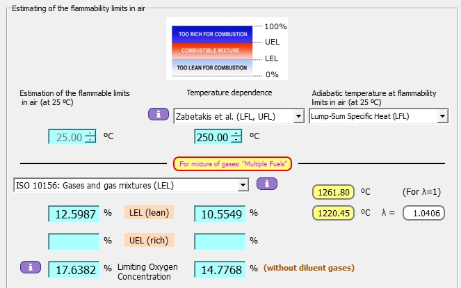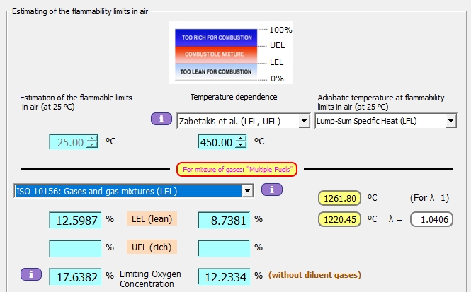 Obtención de los límites de inflamabilidad de mezcla gaseosa mediante diferentes métodos