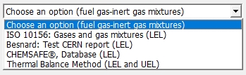 Los primeros tres métodos para mezclas de gases requiere parámetros de sustancia de los componentes individuales. Estos son los coeficientes de potencial de encendido (Tci) y de capacidad de inertización, la denominada equivalencia de nitrógeno (Kk), que se han estimado de forma conservadora mediante datos de inflamabilidad.