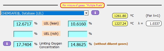El método de cálculo para mezclas de gases se basa en la regla de Le Chatelier y se amplió utilizando los valores de Kk para los componentes inertes de la mezcla. Los LFL calculados de mezclas de metano y gas inerte se compararon con valores experimentales para diferentes tipos de gases inertes. Podría demostrarse que los LFL calculados concuerdan bien con los valores experimentales si se utilizan los valores de Kk derivados de los diagramas de inflamabilidad de tres componentes. Aunque el uso de los valores Kk de la norma ISO 10156:2010 conduce a mayores desviaciones, los resultados siguen siendo seguros.