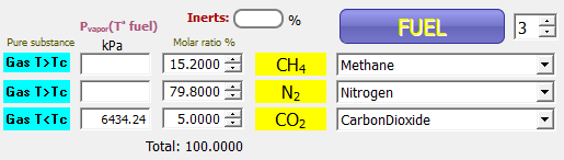 Estado inflamable con múltiples diluyentes: Una mezcla de gases está compuesta (en volumen) por metano 15.2 %, nitrógeno 79.8 %, dióxido de carbono 5.0 %. Encuentre los límites de inflamabilidad para tal mezcla combustible/diluyente.