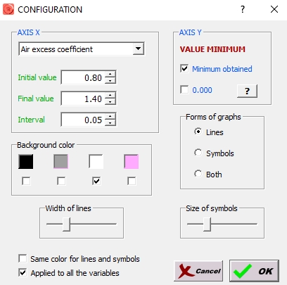 Obtenemos el valor del coeficiente de aire (en combustión rica/defecto de aire) mínimo para que exista proceso de combustión.