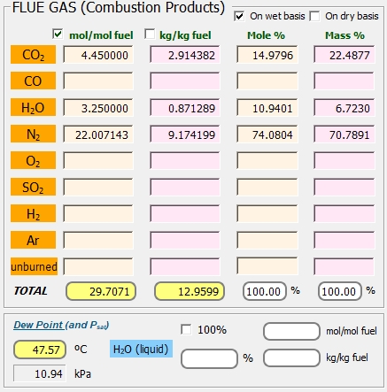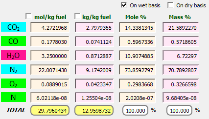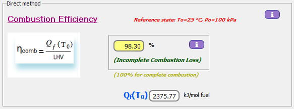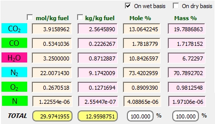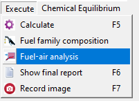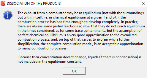 THERMOCombustion resuelve de manera simultánea el sistema de ecuaciones (a temperatura y presión constantes) mediante el método Newton-Raphson resolviendo la matriz Jacoviana resultante. El software es capaz de determinar la temperatura adiabática de equilibrio químico y las concentraciones de las sustancias resultantes, mediante un procedimiento iterativo que pone en juego el balance energético en la cámara de combustión, y también podemos fijar esta temperatura y obtener las concentraciones.