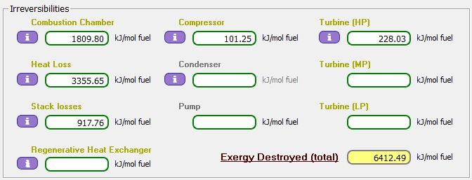 El aumento de presión, manteniendo constante la temperatura de entrada a la turbina de gas, generará mayores pérdidas en la cámara de combustión, ya que hay mayor disponibilidad de obtener energía a la salida, pero no se aprovecha, por lo que debe ser desechada en este elemento. Esto evidentemente, afectará a las eficiencias globales de la instalación: