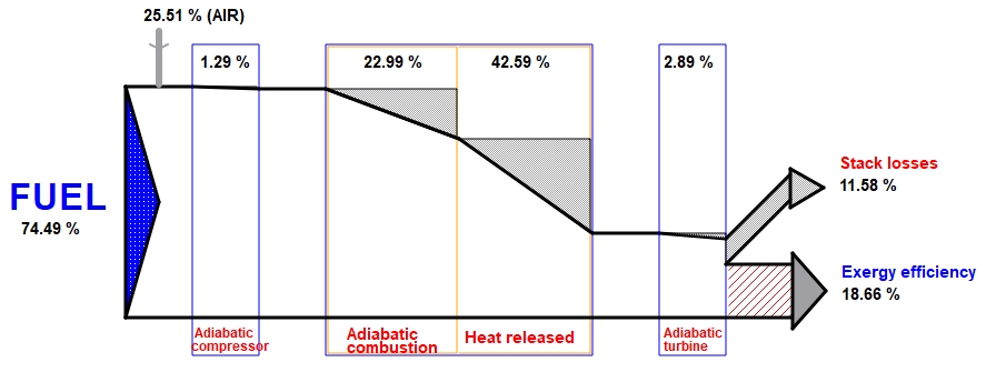 Si bien un diagrama de Sankey representa una herramienta útil para examinar los flujos de energía en ciclos térmicos y/o procesos de combustión, la información que proporciona no es suficiente para evaluar y comparar adecuadamente diferentes procesos o ciclos. Por lo tanto, una mejor manera de evaluar el rendimiento de estos ciclos es analizar los flujos de exergía, lo cual es posible mediante un diagrama de Grassmann. Este análisis también puede revelar dónde se destruye la exergía en el ciclo y proporcionar información valiosa para una posible mejora del ciclo.
