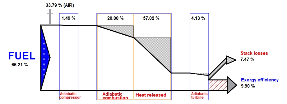 Análisis 25: Turbina de gas de aviación. Diagramas de Sankey y Grassmann