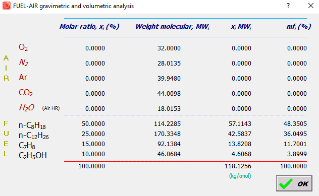 Un combustible líquido (0.33 kg/s) compuesto por la siguiente mezcla volumétrica: