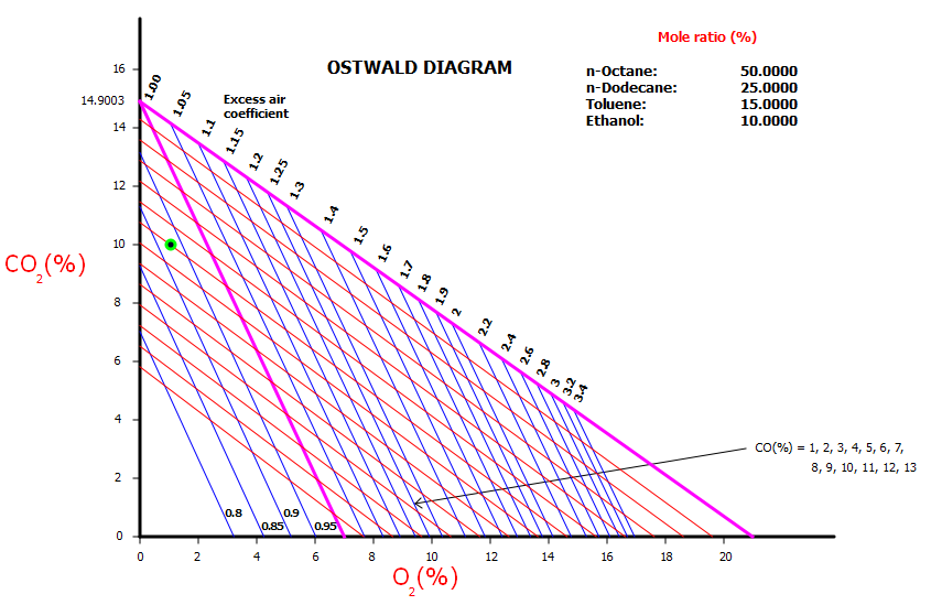 10% CO2 y 1% O2 (no hay presencia de H2)