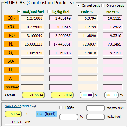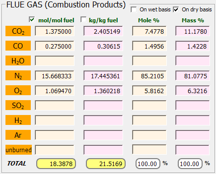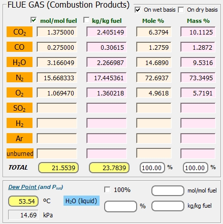 Análisis 27: Gas natural con aire húmedo y combustión incompleta