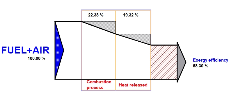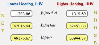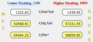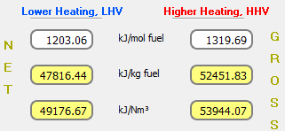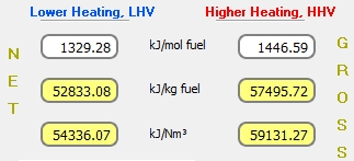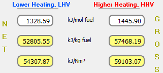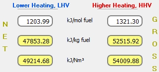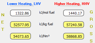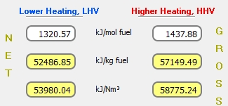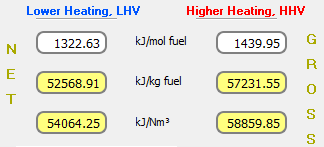 El poder calorífico es la cantidad de energía liberada por una cantidad unitaria de combustible quemada a temperatura ambiente y los productos de la combustión son enfriados a temperatura ambiente. El poder calorífico se denomina Poder Calorífico Inferior (LHV) cuando el agua de la reacción se convierte en vapor.