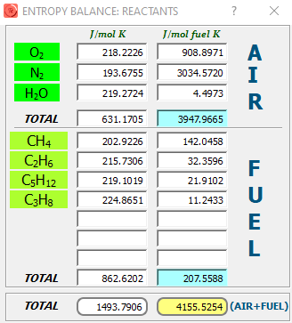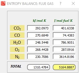 La entropía generada del equipo o entropía por irreversibilidades depende de los flujos de entropía de los reactivos y los productos y Q̇f/Tf es la entropía generada por transferencia de calor, la cual es cero en caso de que el sistema sea adiabático.