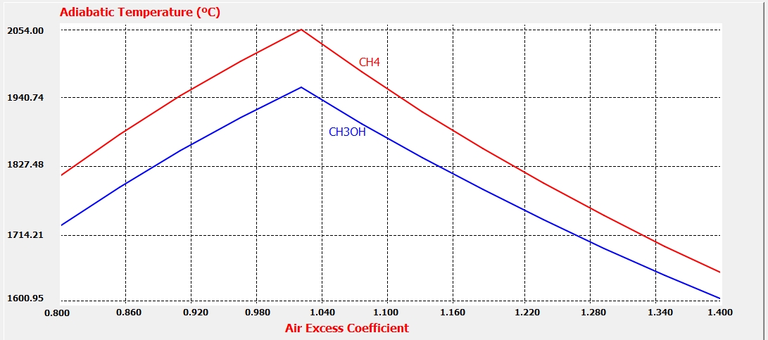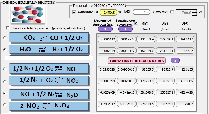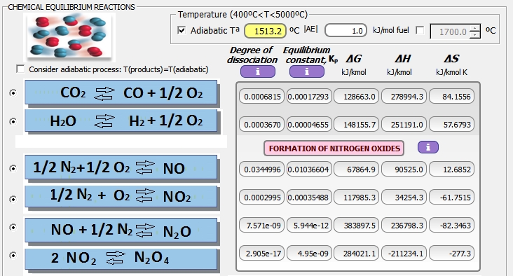 Verificamos que la disociación de los productos decrece levemente la temperatura adiabática de la llama.