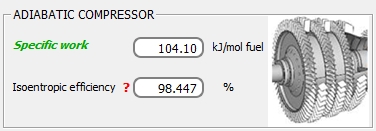 La eficiencia isoentrópica del compresor es obtenida inicialmente, 98.44%. En análisis de ingeniería, la eficiencia isoentrópica es un parámetro para medir el grado de degradación de la energía en dispositivos de flujo constante. Implica una comparación entre el rendimiento real de un dispositivo y el rendimiento que se lograría en circunstancias ideales para los mismos estados de entrada y salida. Aunque existe transferencia de calor entre el dispositivo y su entorno, la mayoría de los dispositivos de flujo estacionario están destinados a operar en condiciones adiabáticas. Los compresores y las bombas, cuando se someten a un proceso de flujo constante, consumen energía. La eficiencia isoentrópica de un compresor o bomba se define como la relación entre el trabajo de entrada a un proceso isoentrópico y el trabajo de entrada al proceso real entre las mismas presiones de entrada y salida.