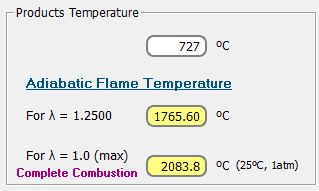 Temperatura adiabática de la llama, 1765.6ºC: