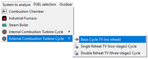 Seleccionamos un proceso de combustión externa: