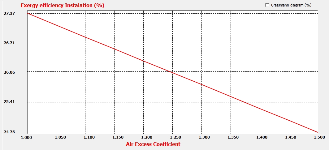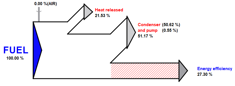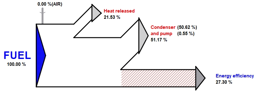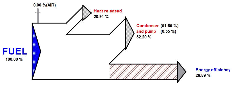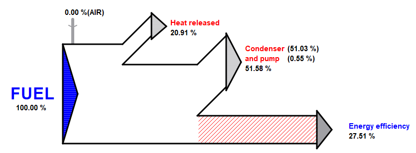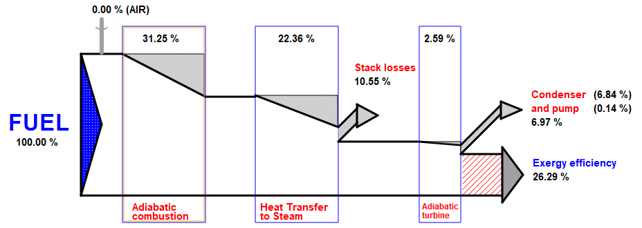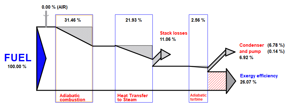 Las potencias eléctrica y mecánica tienen el mismo valor de exergía, y el poder calorífico del combustible también es aproximadamente igual al valor de exergía. El valor de energía térmica se convierte en valor de exergía mediante la eficiencia del ciclo de Carnot.