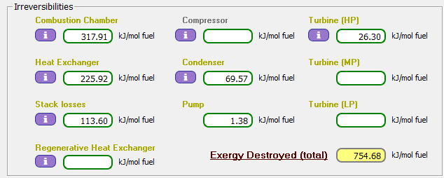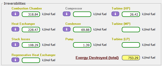 Los resultados así obtenidos son más reales, lo que conlleva a un ligero aumento de las pérdidas por irreversibilidades totales, y una leve disminución de las eficiencias energética y exergética de la instalación.