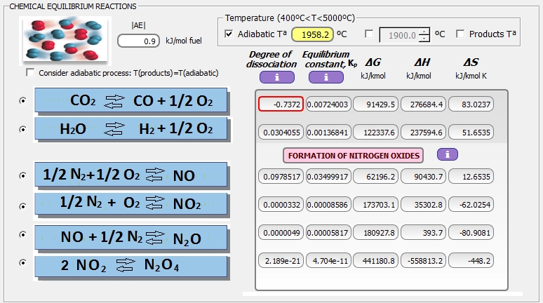 Disociación de los productos de combustión (en situación adiabática):