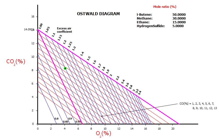 Empleando el diagrama de Ostwald (exceso de aire del 1.10, 8.30% de CO2 y 4.08% de O2).
