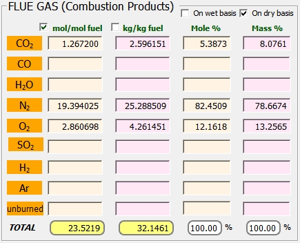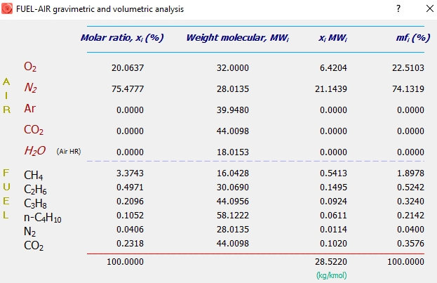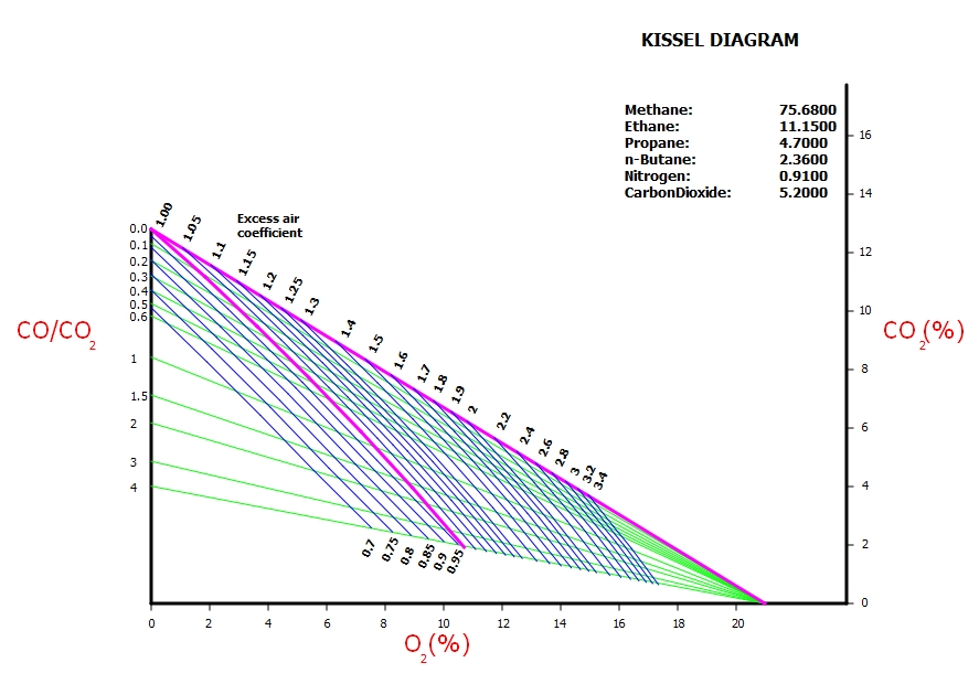 Conocida la temperatura de los humos de combustión y el calor evacuado al ambiente, mediante un balance energético (proceso iterativo), es calculado el coeficiente de exceso de aire.