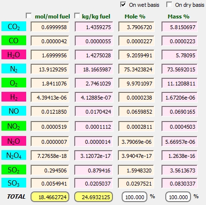 - 2*Air=2*NCO2+NCO+NH2O+NN2O + NNO + 2*NO2 +4*NN2O4 + 2*NNO2 + 2*NSO2+ 3*NSO3