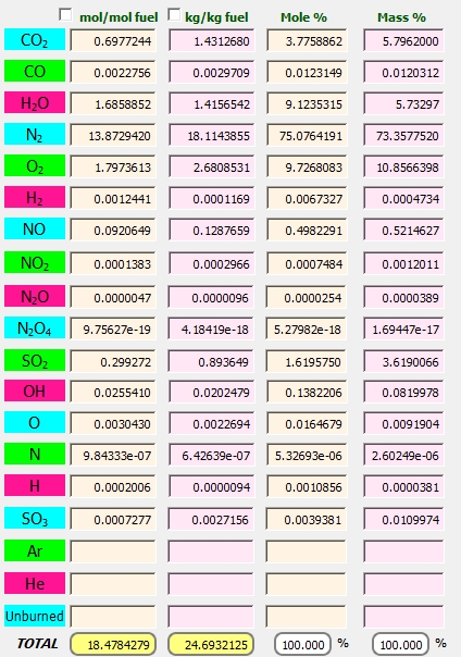 - 2*Air=2*NCO2+NCO+NH2O+NN2O + NNO + 2*NO2 +4*NN2O4 + 2*NNO2 + NOH + 2*NSO2+ 3*NSO3 +NO