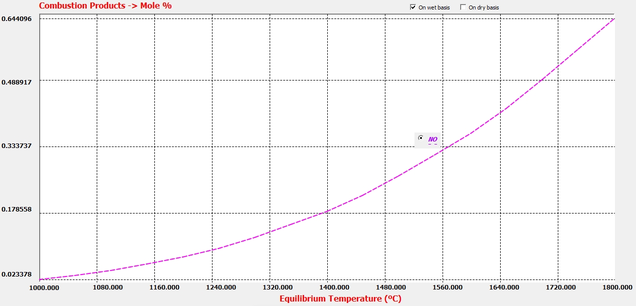 Análisis 54: Disociación química, formación NOx (11 reacciones): Modelo de equilibrio químico.