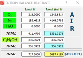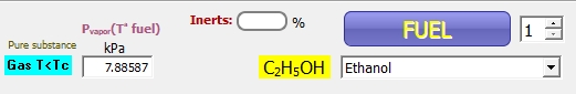 THERMOCombustion considera al combustible como una sustancia gaseosa al definir el usuario "mezcla gaseosa de hidrocarburos". Sin embargo, en este caso, el etanol a 25ºC y 100 kPa se encuentra en estado líquido, ya que su presión de saturación a 25ºC es 7.88587 kPa, por lo que si se desea tomar los límites de los cálculos justamente en la entrada de la cámara de combustión, simplemente habría que poner la presión de 100 kPa.