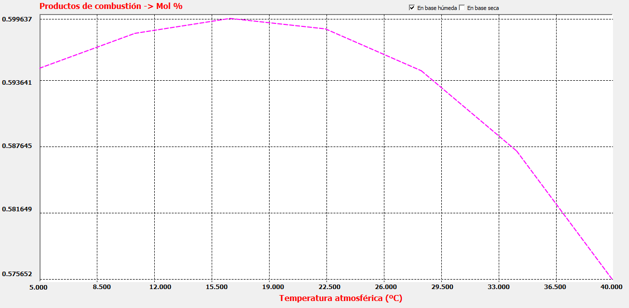 Aunque, cuando tenemos valores de humedad relativa medio/altos se invierte esta tendencia, es decir decrementan los NOx con el aumento de temperatura del aire atmosférico. Se observa, que aumenta la humedad específica del aire, es decir tenemos más cantidad de H2O en los productos de combustión (ya que la cantidad de aire es constante, al tener fijo el coeficiente de exceso de aire) al aumentar la temperatura del aire.