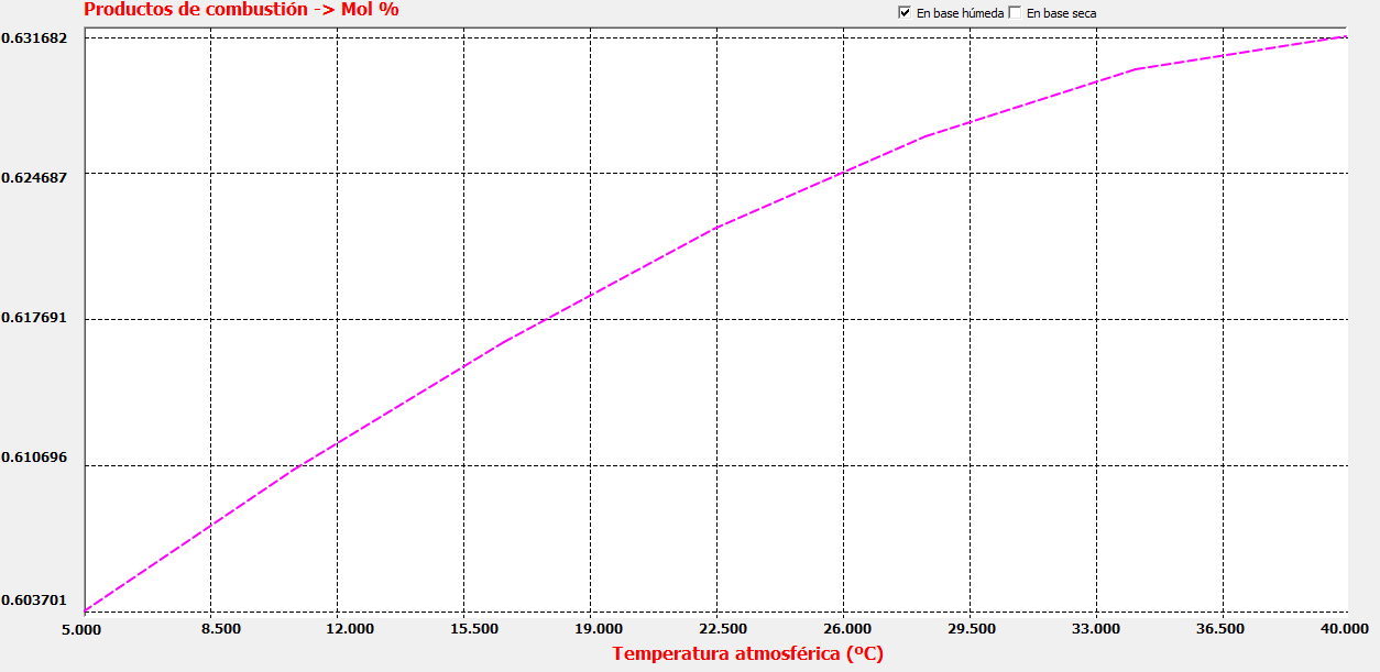 El efecto de la temperatura del aire atmosférico, sabiendo que la humedad específica del aire (que es la misma a la entrada y a la salida del compresor, ya que no existe en él condensación ni evaporación del aire en el compresor). Cuando la humedad relativa es baja, un aumento de temperatura incrementa los NOx.