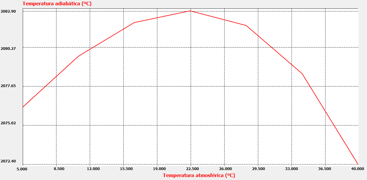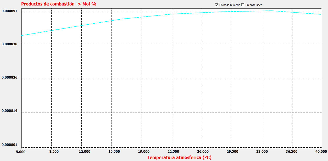 Para demostrar esto último, analizamos los NOx generados para acetileno C2H2 y etano C2H6 (con mayor cantidad de hidrógenos y misma cantidad de carbonos). Obviamente, con el etano se tendrá mayor cantidad de agua (2.61 veces superior para una combustión completa con un 15 % de exceso de aire) en los productos de combustión, menor temperatura adiabática (300 ºC inferior) y unos NOx la mitad aproximadamente que para el acetileno. Por lo tanto, se observa que para valores medio/altos de humedad relativa el efecto que predomina (cuando incrementa la temperatura del aire) es el másico, que hace decrementar los NOx con la consiguiente disminución de la temperatura adiabática de la llama.