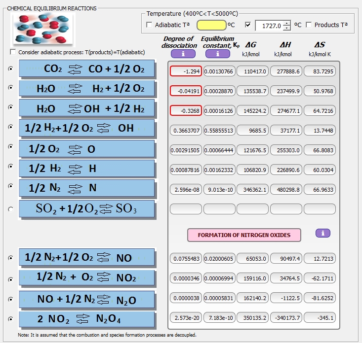 Cuando se conocen las constantes de equilibrio a diferentes temperaturas, se pueden calcular los grados de disociación a dichas temperaturas.