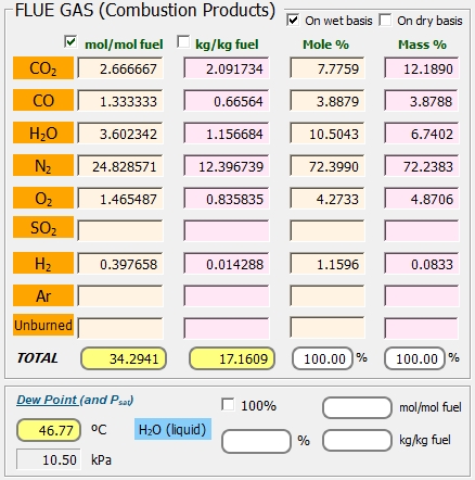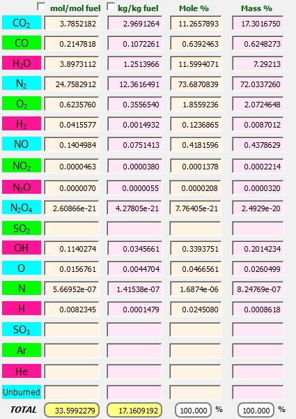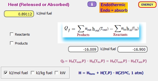 Estas reacciones son endotérmicas y convierten parte del calor sensible de los gases de combustión en calor potencial, en forma de calor de combustión de los componentes combustibles formados y calor de formación del hidrógeno y el oxígeno atómicos. Por lo tanto, la combustión de combustibles se vuelve incompleta a altas temperaturas. Esto tiene dos efectos: primero, disminuye la eficiencia de la combustión y, segundo, la temperatura del sistema disminuye. Este segundo punto se puede chequear de los resultados obtenidos de temperatura adiabática de la llama. Otro efecto de la disociación es el leve aumento del volumen y el número de moles de los gases.