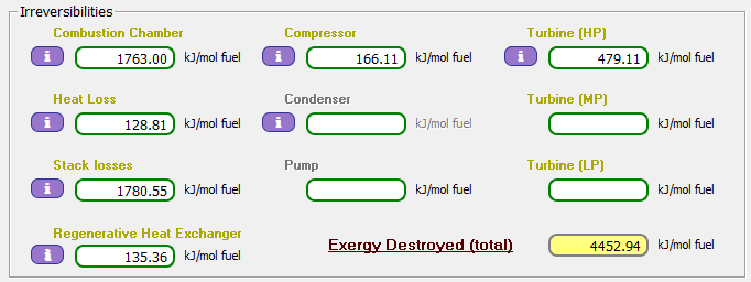 Irreversibilidades en cada elemento de la instalación