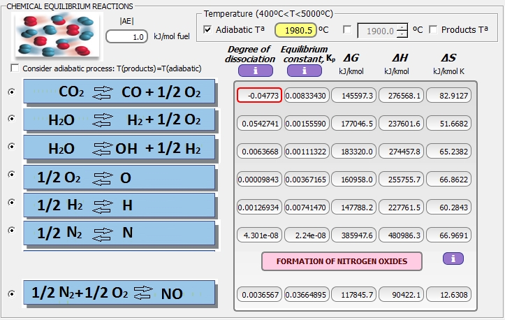 Con disociación química a 1900 ºC: