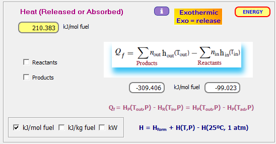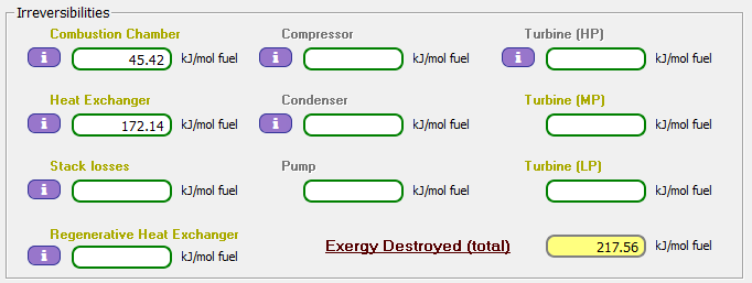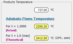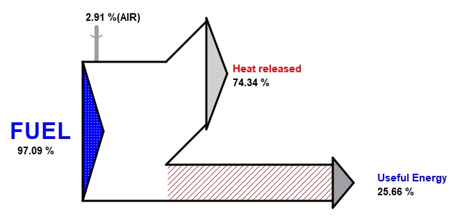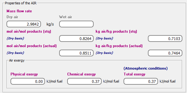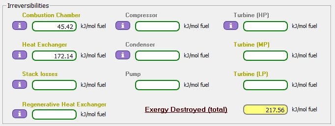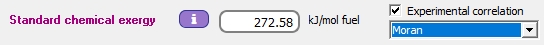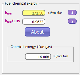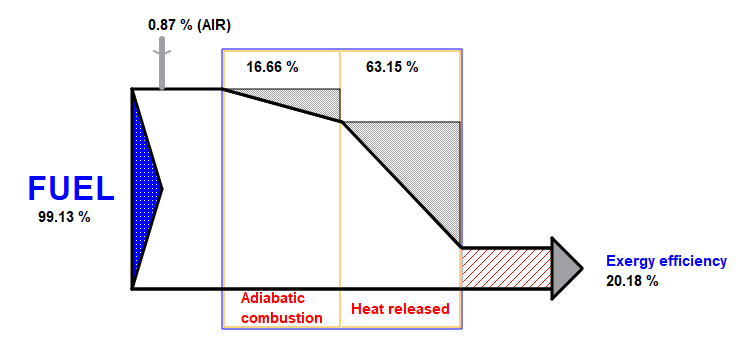 Análisis 74: Combustión completa de 1 m³/s de combustible. Análisis exergético