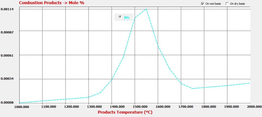 Las emisiones de NOx requieren tanto de oxígeno como altas temperaturas para su formación. Las temperaturas más altas ocurrirán con mezclas ricas, y luego caerán a medida que la mezcla se empobrezca. Sin embargo, sólo con mezclas pobres habrá cantidades significativas de oxígeno libre. Por lo tanto, a medida que la mezcla se empobrece a partir de la estequiométrica, existe una compensación entre el aumento del nivel de oxígeno y la disminución de la temperatura.