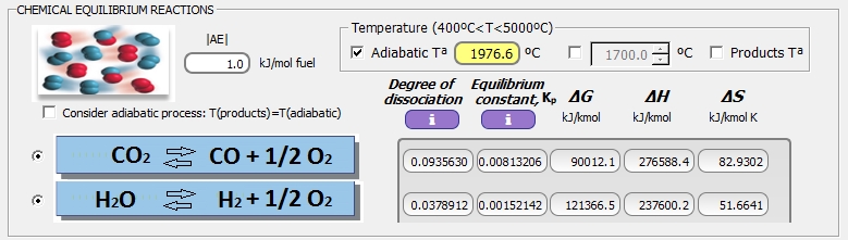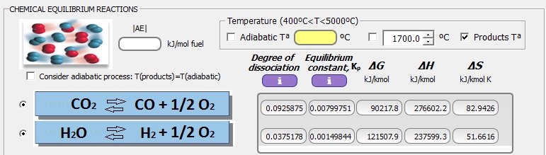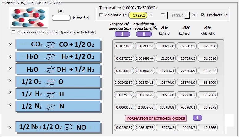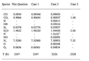 Considerando disociación química de los productos de combustión con algunas especies más: