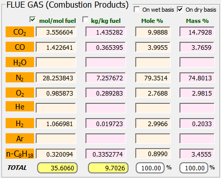 Análisis 83: Combustión de Orsat con inquemados (hidrógeno e inquemado)
