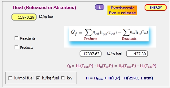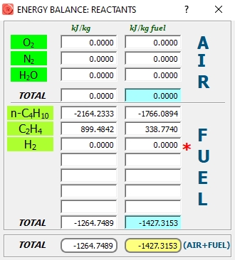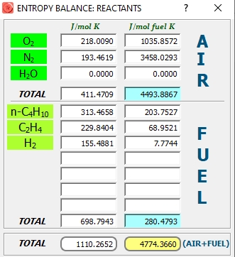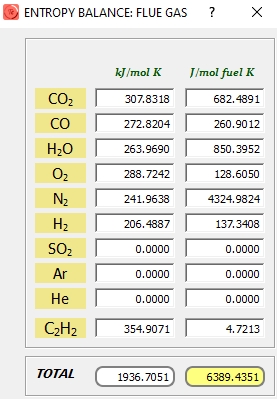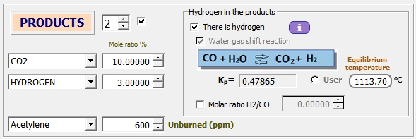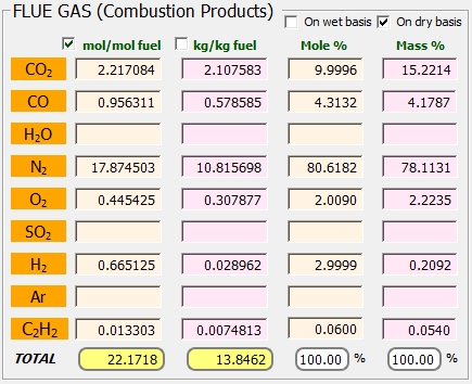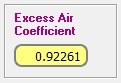 Conocidas las fracciones molares de dos compuestos (pudiéndose añadir la del inquemado), además de la temperatura de los productos de combustión, ThermoCombustion obtiene el coeficiente de exceso de aire, λ=0.92261.